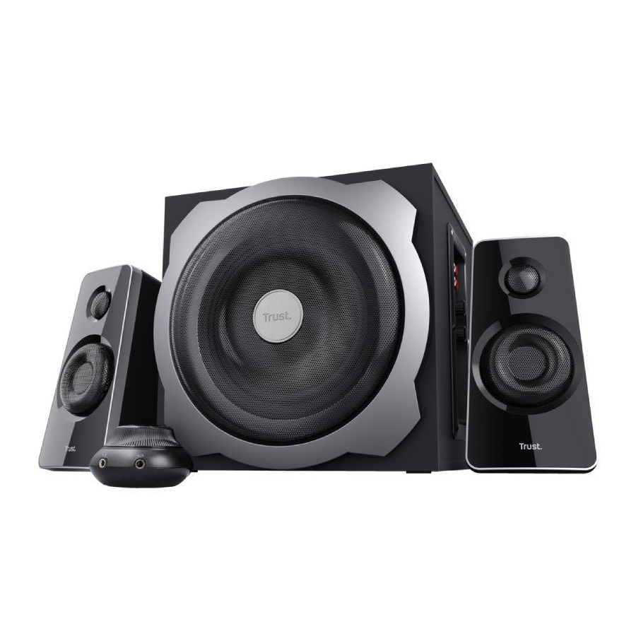 <h3>Bajos potentes y claridad de sonido</h3>Disfruta de una calidad de audio excepcional con los altavoces Trust Tytan. Gracias a su subwoofer de 5.25 pulgadas, los bajos son profundos y potentes, mientras que los altavoces satélite de rango completo garantizan una reproducción clara y nítida de los medios y altos. Cada nota, cada detalle de tu música favorita o de tus películas y videojuegos cobrarán vida con una claridad impresionante.
