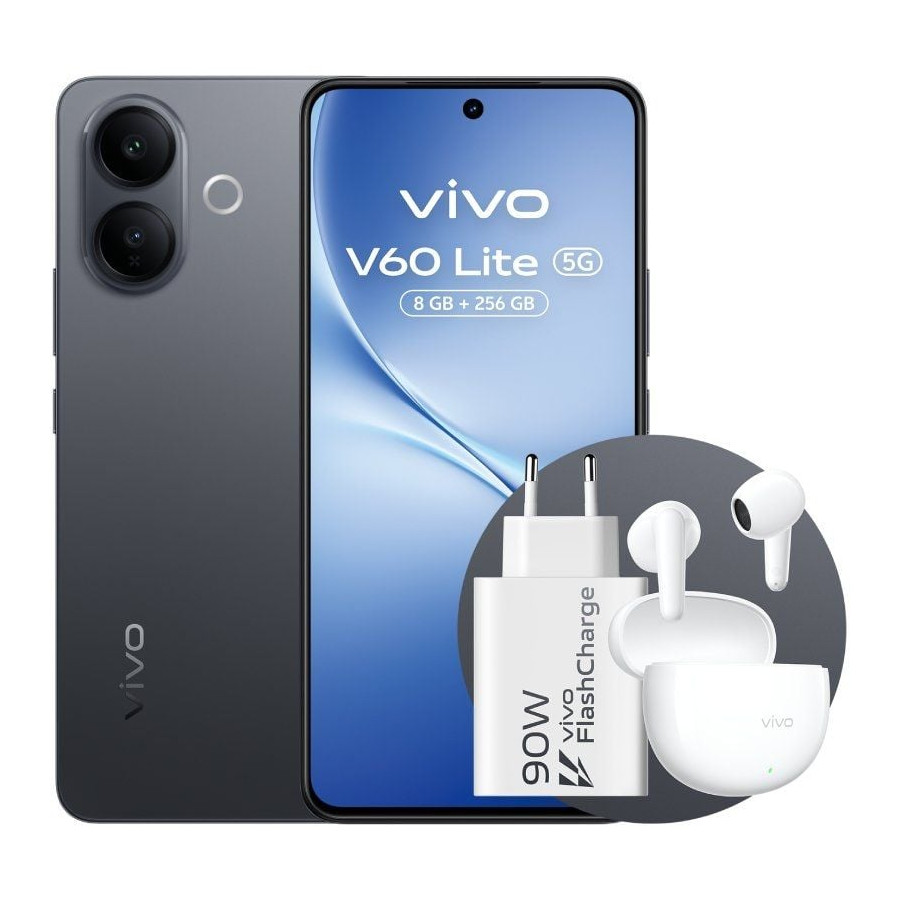 Con la tecnología 5G integrada, el Vivo V60 Lite te permite conectarte a una velocidad sin precedentes, asegurando descargas rápidas, streaming suave y una experiencia en línea sin interrupciones. Además, con el cargador de 90W y los Buds incluidos, estarás listo para disfrutar al máximo de tu nuevo dispositivo desde el primer momento.